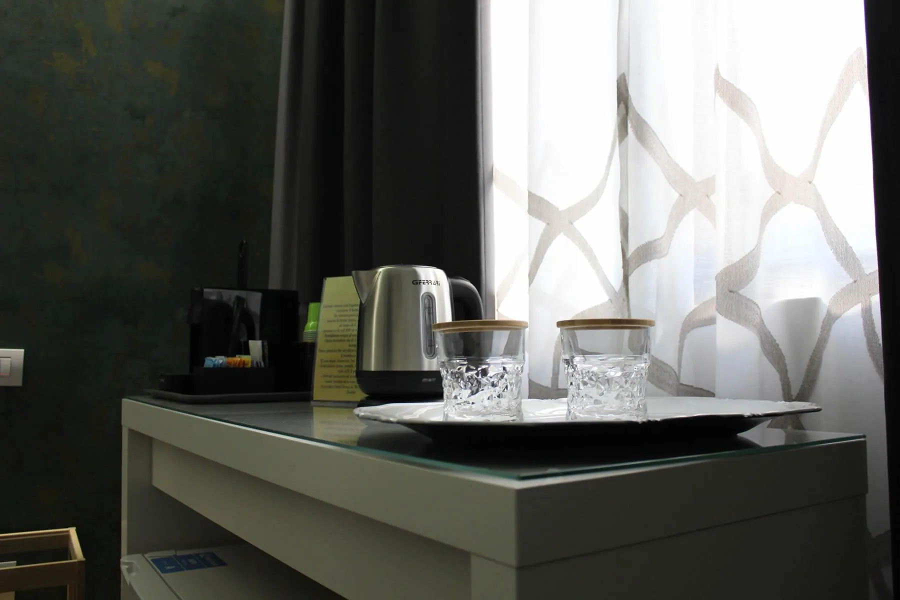 La chambre est insonorisée, équipée d’une fenêtre double vitrage et de la climatisation. Ils disposent d’une connexion Wi-Fi gratuite, d’une bouilloire avec sélection de café/thé et d’un mini-réfrigérateur. Elle dispose d’une télévision par satellite avec Netflix, d’une salle de bains privative avec douche d’hydromassage et chromothérapie, d’un sèche-cheveux et d’articles de toilette (peignoir, pantoufles et articles de toilette).
