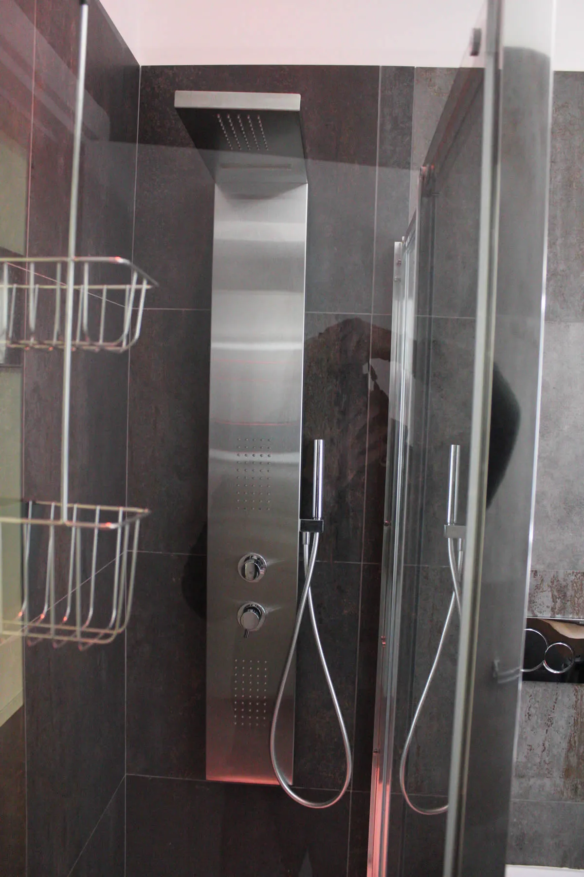 Les salles de bain de nos chambres, ainsi que propres et aseptisées selon la réglementation, sont équipées de douche hydromassante et de chromothérapie .